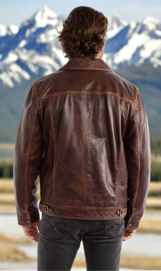 Washed Lambskin Chocolate Jean Jacket by Scully in Size S, M, L, XL, 2X, 3X, or 4X