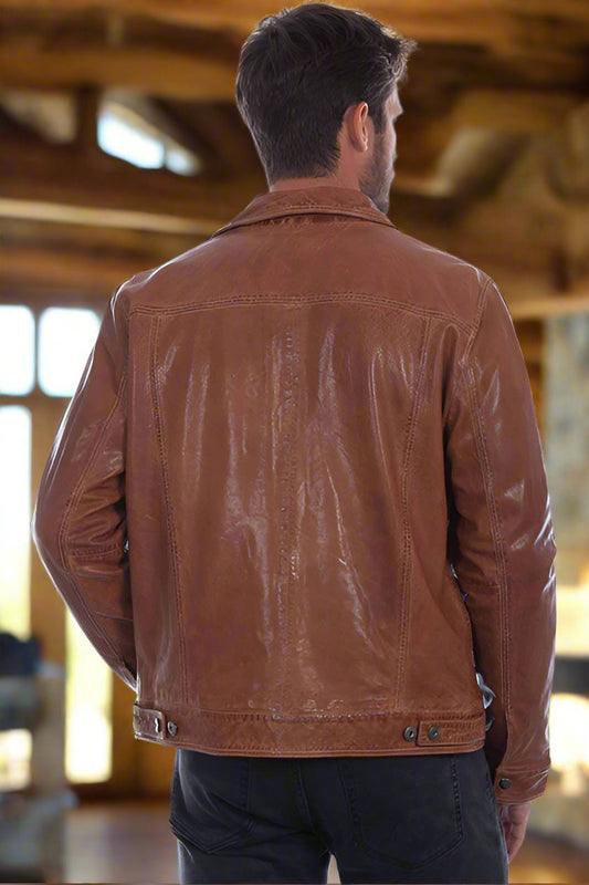Washed Lambskin Cognac Jean Jacket by Scully in Size S, M, L, XL, 2X, 3X, or 4X