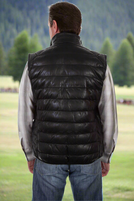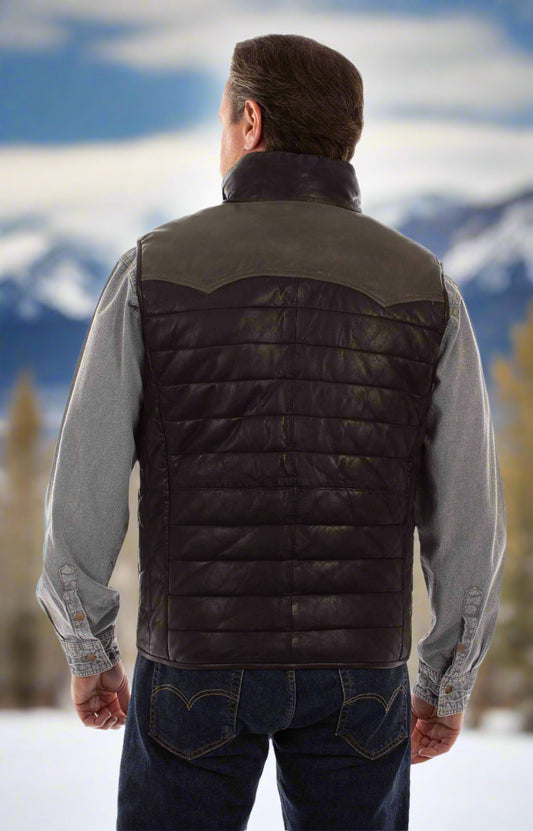 Leather Vest with Caiman Inset Front Yoke Extra Tall
