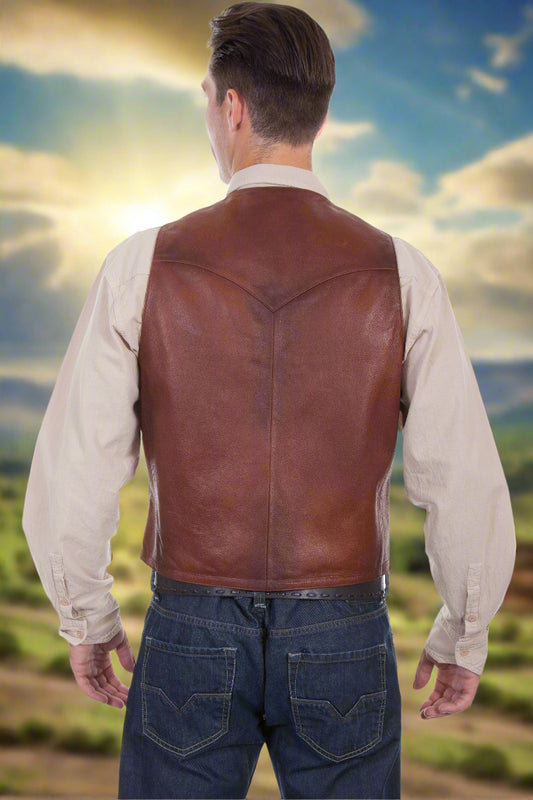 Whipstitch Brown Buffalo Leather Vest by Scully in Size S, M, L, XL, or 2X