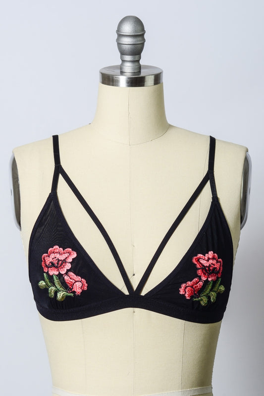Rose Embroidered Bralette by LETO in Size S, M, or L