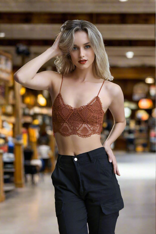 Vintage Inspired Crochet Lace Overlay Bralette by LETO in 4 Color Choices in Size S, M, L