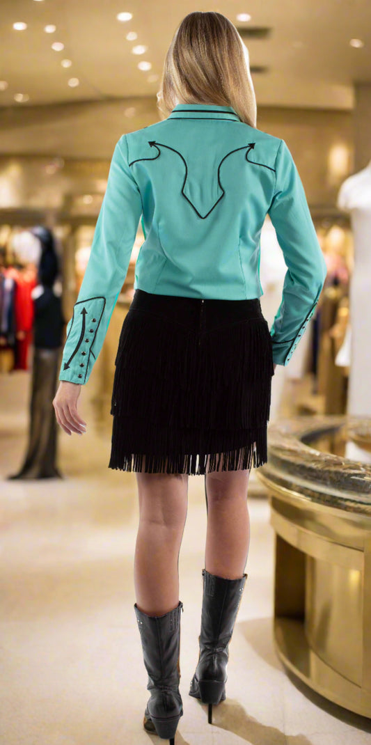 Line Dancing Turquoise Genuine Suede Fringe Skirt by Scully in Size XS, S, M, L, XL, or XXL