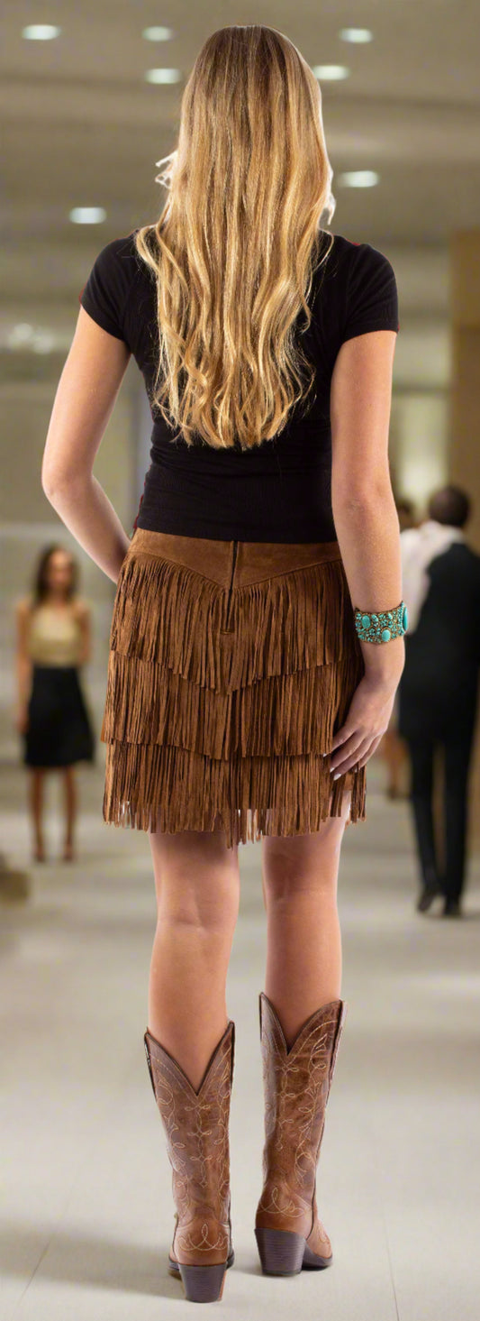 Line Dancing Cinnamon Genuine Suede Fringe Skirt by Scully in Size XS, S, M, L, XL, or XXL