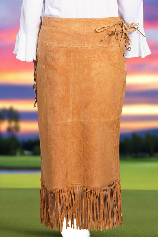 Cinnamon Long Suede Fringe Skirt by Scully in Size XS, S, M, L, XL, or XXL