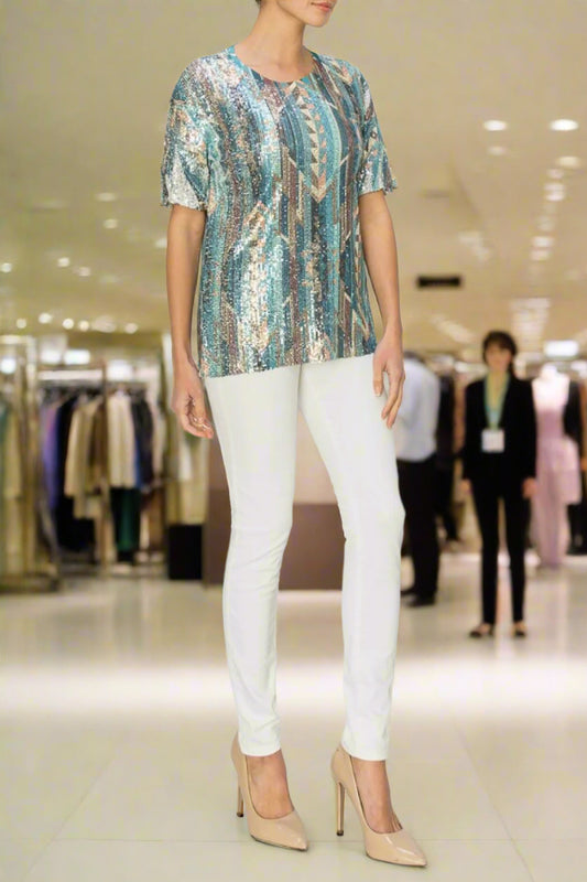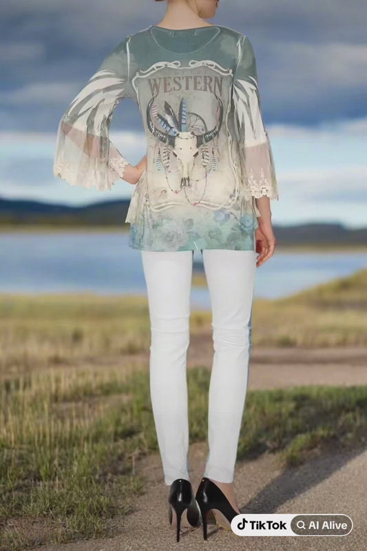 Western Cowgirl Short Sleeve Top by Origami in Size S, M, L, XL, or 2XL