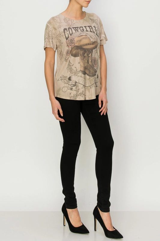 Cowgirl Boots and Hat Tee Shirt in Size S, M, L, XL, or 2XL