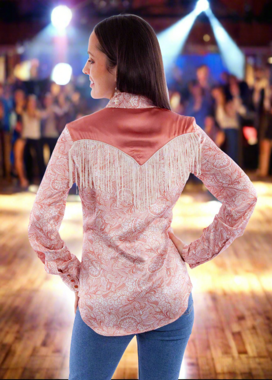 Vintage Peach Blouse with Fringe by Scully in Size XS, S, M, L, XL, 2XL