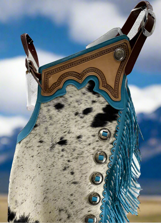 Large Hair On Chinks with Turquoise Fringe by Colorado Saddlery