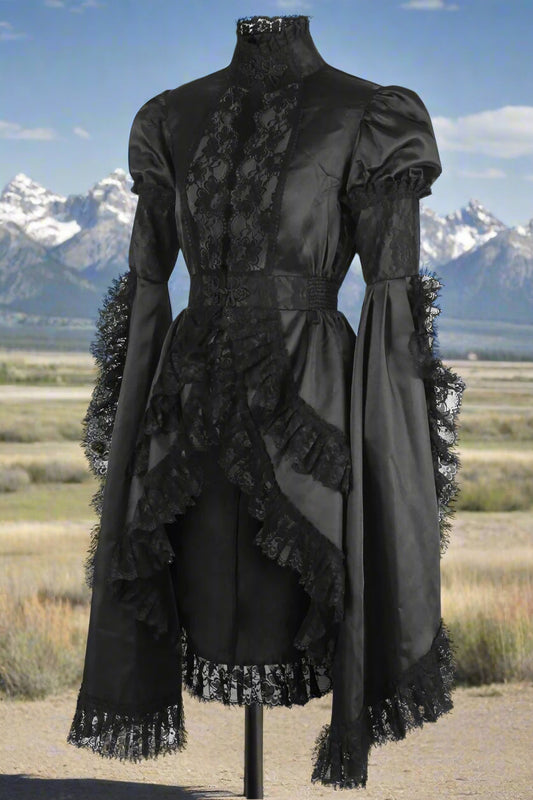 Black Satin and Lace Ruffled Jacket