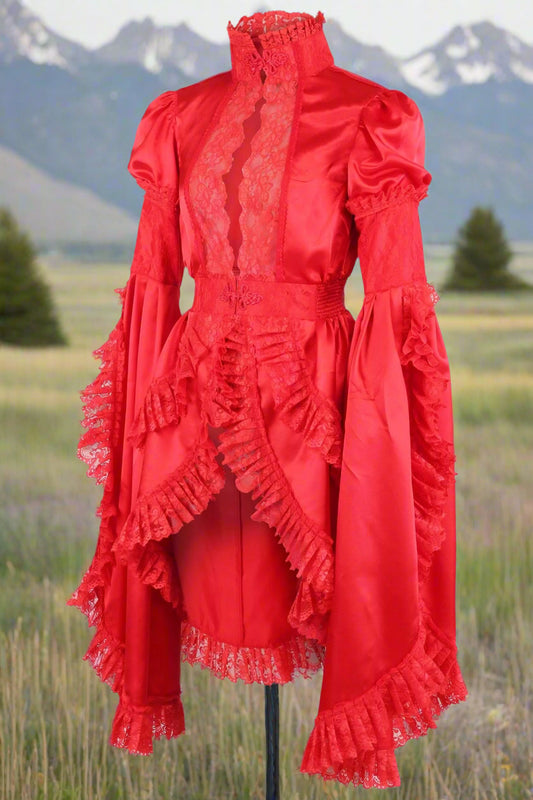 Red Satin and Lace Ruffled Jacket