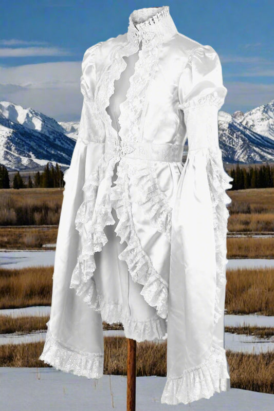 White Satin and Lace Ruffled Jacket
