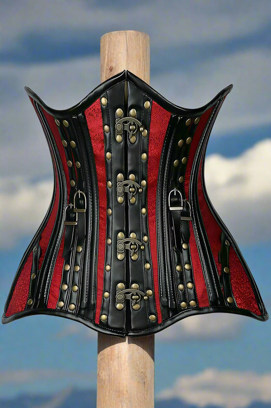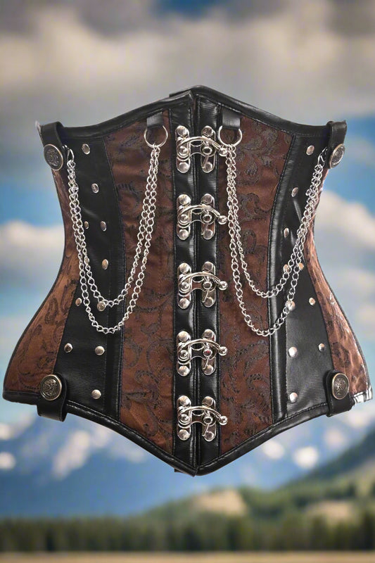 Steel Boned Under Bust Corset with Chains and Clasps in Black or Brown